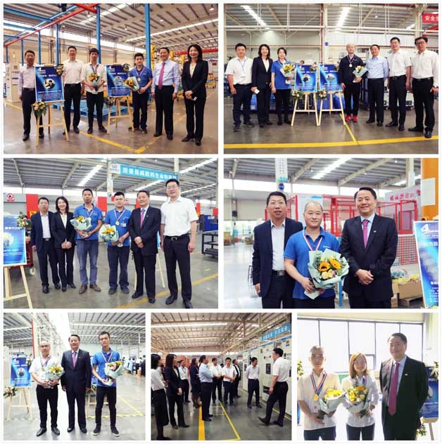 仪式后,吉主席等一行领导还特别慰问了一线工人,并为“爱岗敬业、最美劳动者”获奖人员进行现场颁奖,吉主席亲手送上的鲜花和金灿灿的奖牌给予了他们莫大的鼓舞,同时也激励着所有电气人向最美看齐,看优秀看齐!
