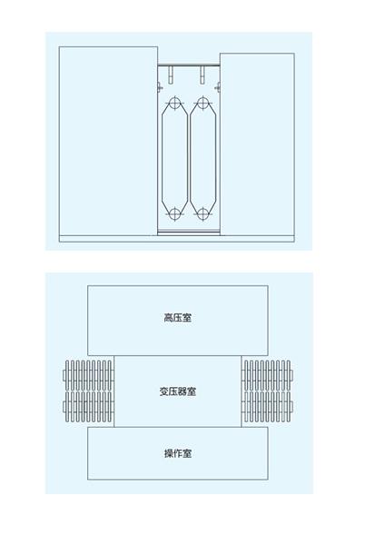 1、 箱变结构分为变压器本体、高压室、低压室、检测室、开关操作室和熔断器室六个部分,可按“目”字型或“品”字型排列。