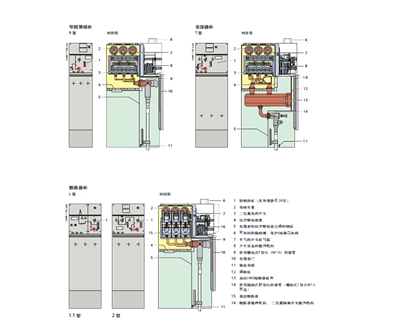 —对于变压器柜,采用插拔式肘型头或螺栓式T型头(M16)