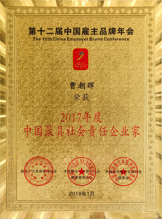 中国雇主品牌论坛组委会经多年最佳雇主调研数据库和《北大商业评论》、《中国品牌》、搜狐财经、新浪财经等20多家合作媒体评审,威胜电气有限公司荣获2017年度中国最佳雇主企业,曹朝辉董事长荣获中国最具社会责任企业家。