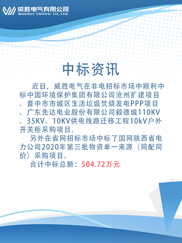 另外在省网招标市场中标了国网陕西省电力公司2020年第三批物资单一来源(同配同价)采购项目。