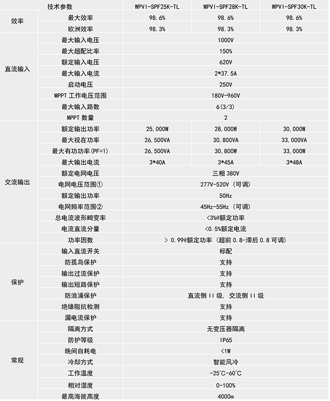 光伏逆变器WPVI-SPF25K/28K/30K-TL