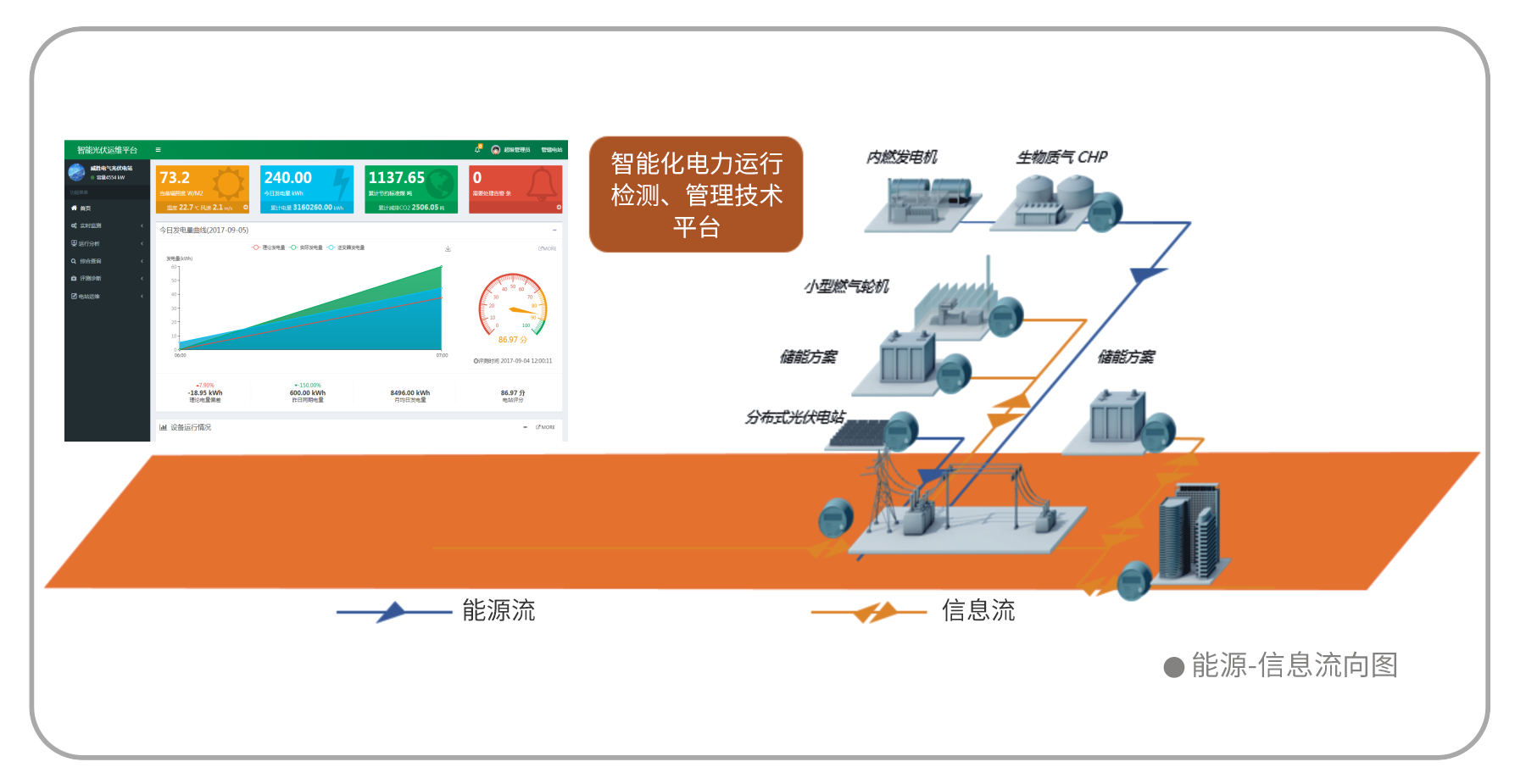 智能光伏电站管理系统立足于光伏发电运维市场,通过智能化的解决手段进行电站优化,提高光伏发电效益,以增强发电量为目的,最大限度提高电站的运维水平。智能解决方案乘着“互联网+”这股东风,通过“专业化”+“信息化”的服务方式全方位多渠道支撑电站运维。