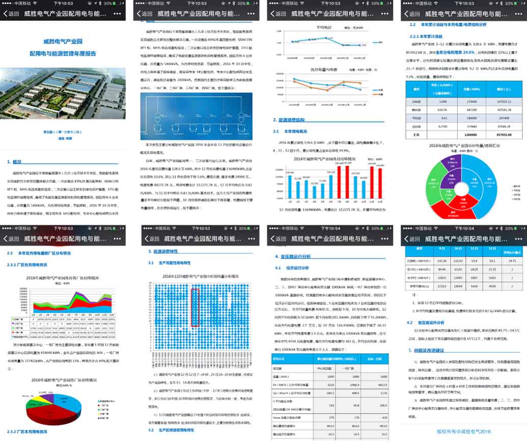 结合大数据的应用,定期针对用户的配电及能效管理进行总结与分析,并出具相关的智能配电与能效月度、季度、年度分析报告。报告的主要内容为:配电设施与用能的基本概况、能源消费结构与消费特性、主要设备运行分析、用电报装、相关问题及建议等。